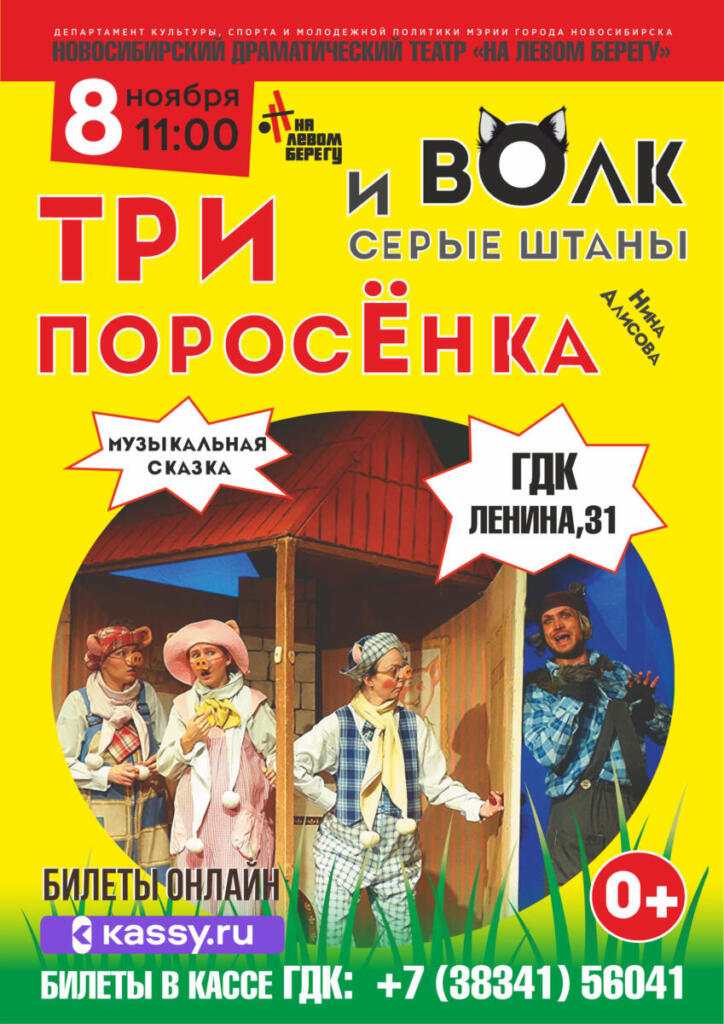 ГДК Бердска приглашает на детский спектакль «Три поросёнка и Волк Серые Штаны»