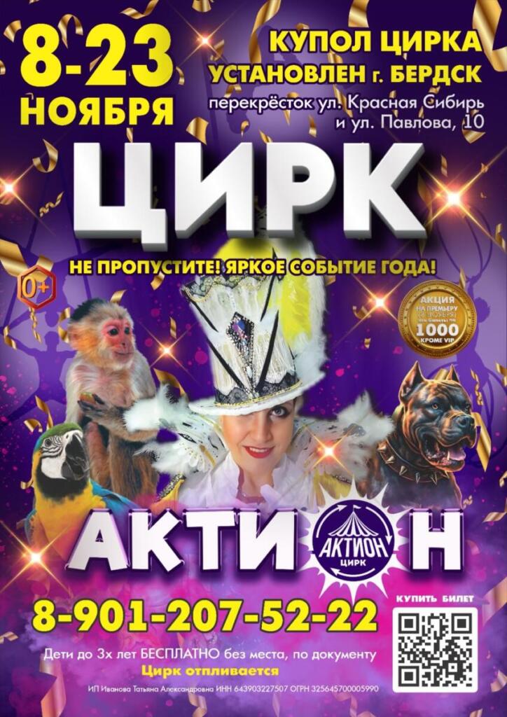 С 8 по 23 ноября в Бердске выступает цирк-шапито "Актион" с программой "Классика жанра" - билеты в продаже!