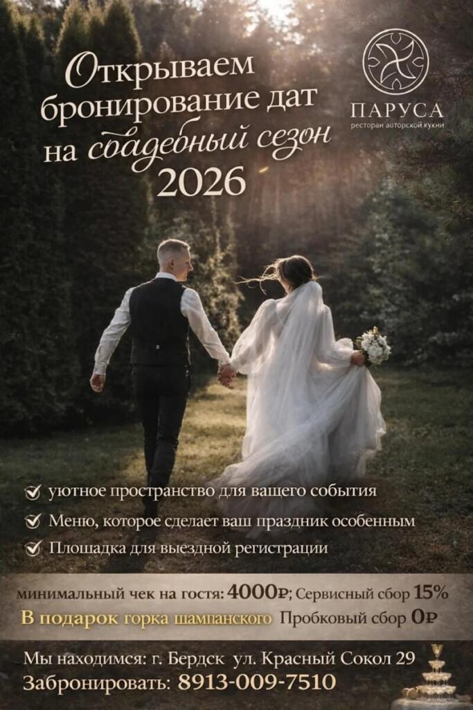 Свадебный сезон 2026. Открываем бронирование в ресторане «Паруса»