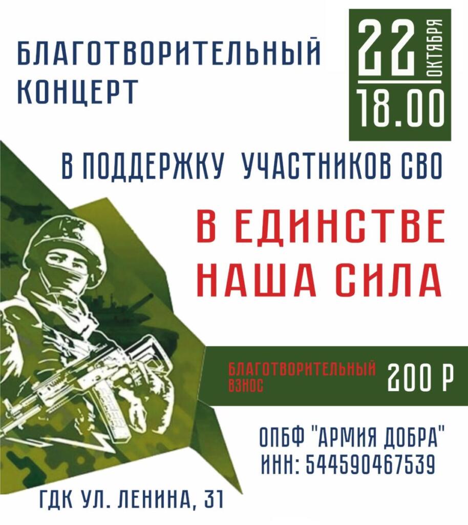 Благотворительный концерт «В единстве наша сила» впервые пройдет в Бердске — в помощь бойцам СВО