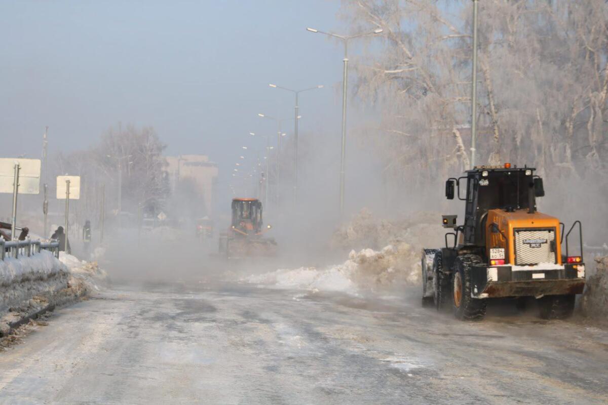 Снег смешивают с водой на дороге – в Бердске ликвидируют последствия потопа из-за порыва водовода