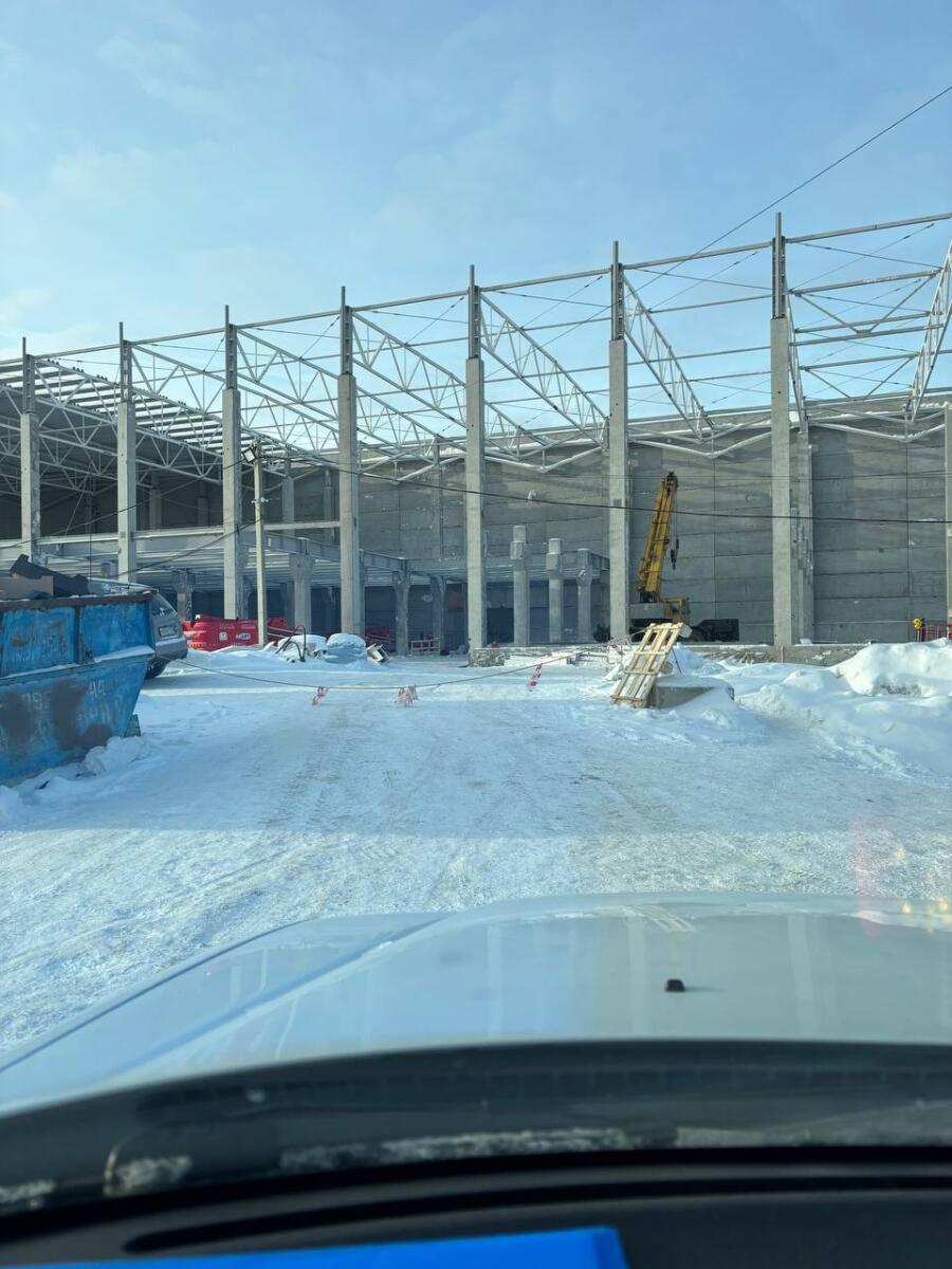 Рабочий выполнял монтажные работы на стройке склада товаров