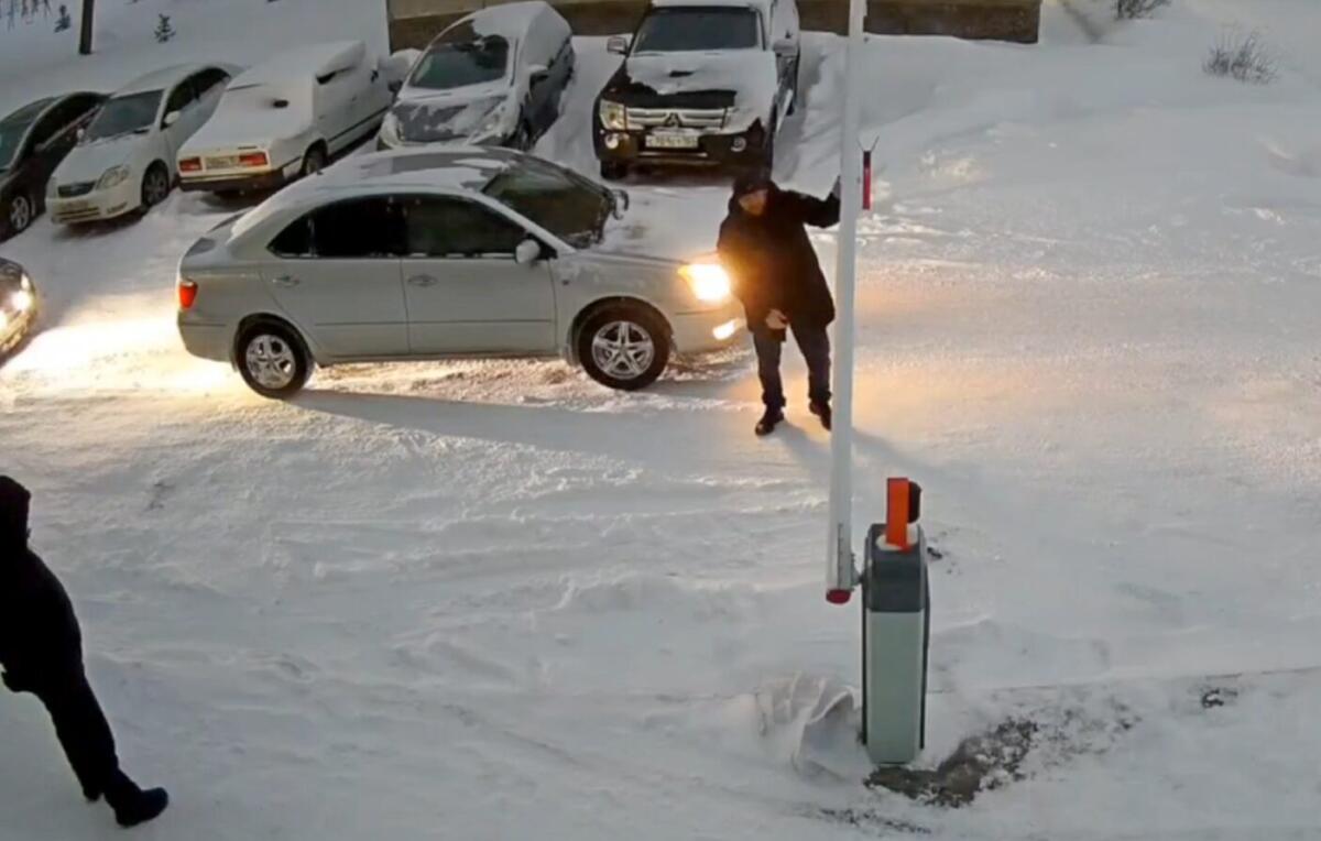 Выломал шлагбаум на ул. Горького, 2 в Бердске вандал под камерой наблюдения