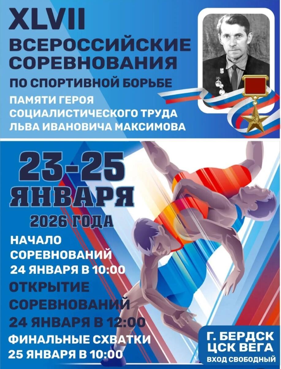 С 23 по 25 января состоится традиционный турнир, посвящённый памяти Героя Социалистического Труда, фронтовика-участника прорыва блокады Ленинграда, слесаря Бердского радиотехнического завода Льва Ивановича Максимова.