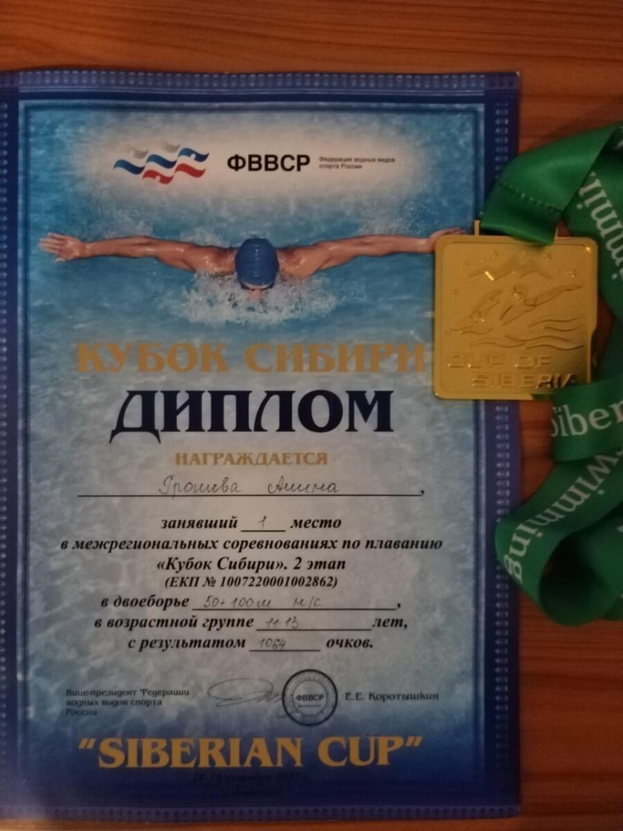 Ученица 7В класса школы № 3 «Пеликан» Алина Грошева успешно прошла испытания межрегиональных соревнований по плаванию «Кубок Сибири» и получила долгожданный титул — кандидата в мастера спорта.
