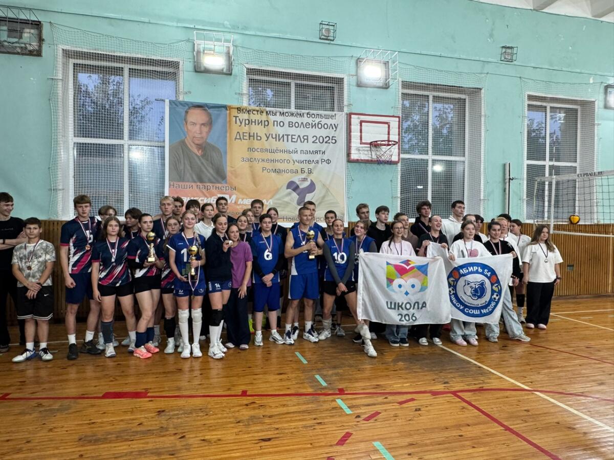 В Новосибирске состоялся турнир по волейболу в честь заслуженного учителя Романова Б. В. На паркет вышли и спортсмены из Бердска — команда шестого лицея. Волейболисты показали высокий уровень подготовки и заняли третье место.